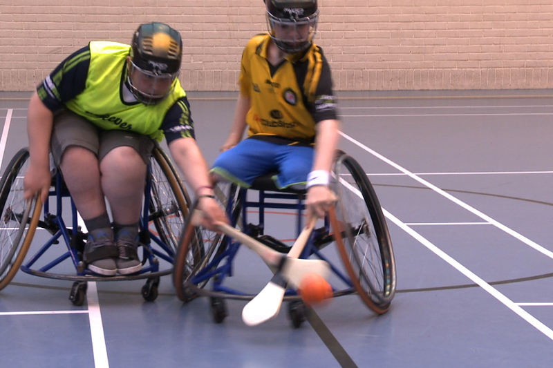 Ag iomáint i gcathaoir rothaí